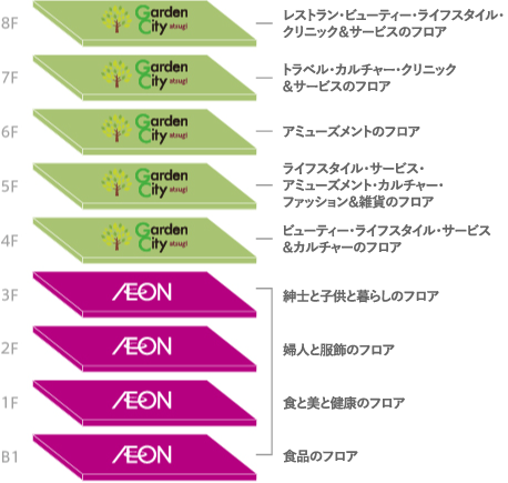 | 営業時間 | ショップ 10:00〜20:00 ※一部店舗により異なります。 レストラン 11:00〜21:00 イオン(地下1階) 8:00〜23:00 イオン(1~3階) 9:00〜22:00 ※一部専門店は営業時間が異なります。 |